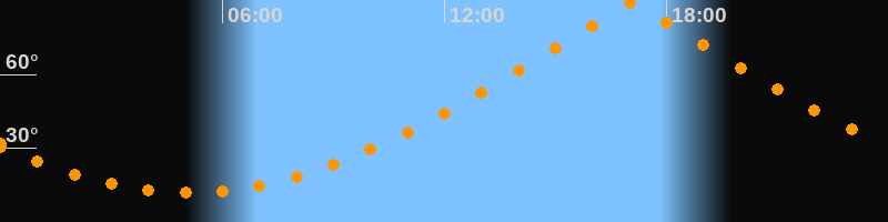 | Höchster Stand (Kulmination) | 17:04 Uhr (h = 89,3°) |