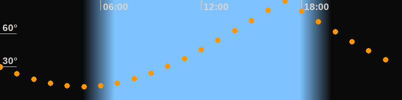 | Höchster Stand (Kulmination) | 16:56 Uhr (h = 89,3°) |