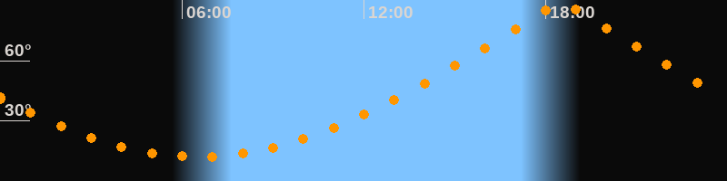| Höchster Stand (Kulmination) | 18:31 Uhr (h = 89,3°) |