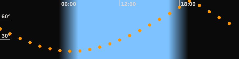 | Höchster Stand (Kulmination) | 19:08 Uhr (h = 89,3°) |