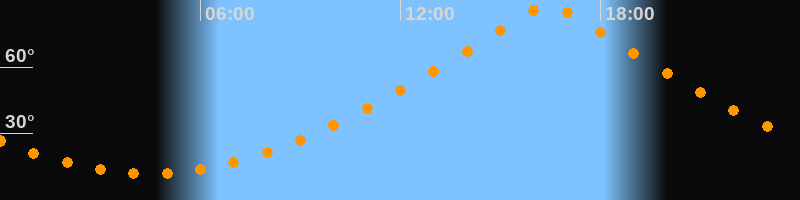 | Höchster Stand (Kulmination) | 16:26 Uhr (h = 89,3°) |
