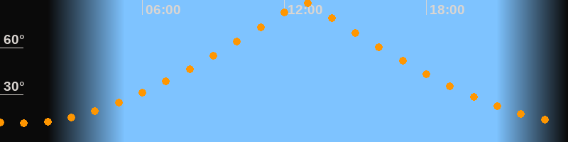 | Höchster Stand (Kulmination) | 12:48 Uhr (h = 89,3°) |