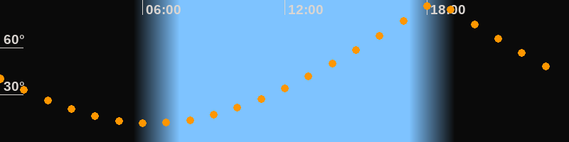 | Höchster Stand (Kulmination) | 18:22 Uhr (h = 89,3°) |