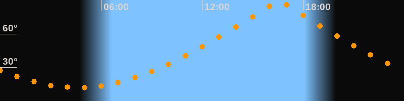 | Höchster Stand (Kulmination) | 16:33 Uhr (h = 89,3°) |