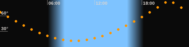 | Höchster Stand (Kulmination) | 21:29 Uhr (h = 89,3°) |