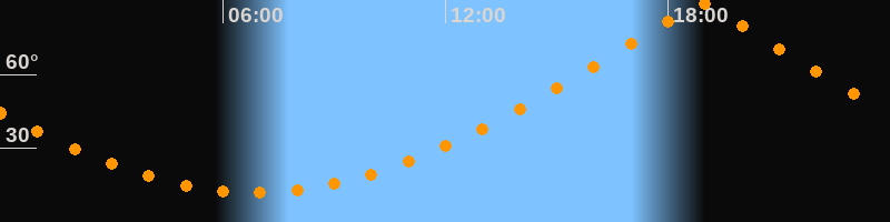| Höchster Stand (Kulmination) | 18:53 Uhr (h = 89,3°) |