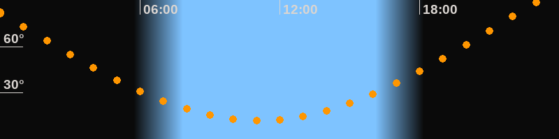 | Höchster Stand (Kulmination) | 23:06 Uhr (h = 89,3°) |
