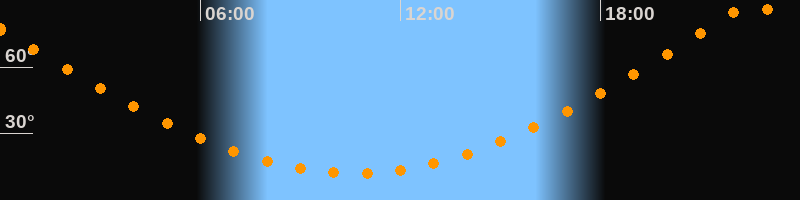 | Höchster Stand (Kulmination) | 22:35 Uhr (h = 89,3°) |