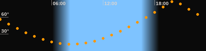 | Höchster Stand (Kulmination) | 20:17 Uhr (h = 89,3°) |