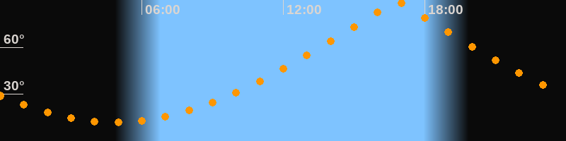 | Höchster Stand (Kulmination) | 16:49 Uhr (h = 89,3°) |