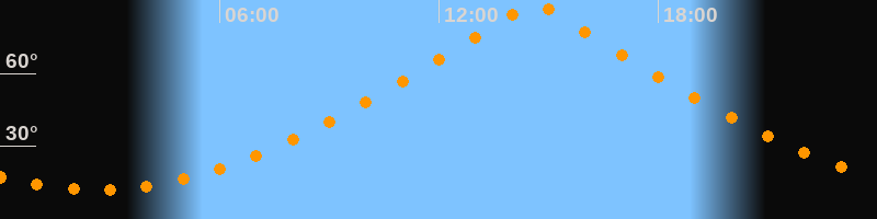 | Höchster Stand (Kulmination) | 14:36 Uhr (h = 89,3°) |