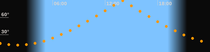 | Höchster Stand (Kulmination) | 13:57 Uhr (h = 89,3°) |
