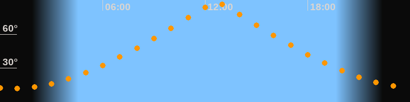 | Höchster Stand (Kulmination) | 12:38 Uhr (h = 89,3°) |