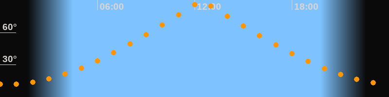 | Höchster Stand (Kulmination) | 12:26 Uhr (h = 89,3°) |
