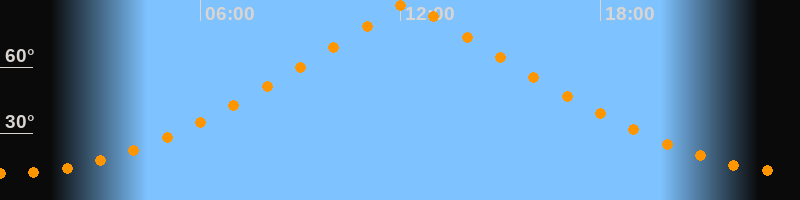 | Höchster Stand (Kulmination) | 12:14 Uhr (h = 89,3°) |