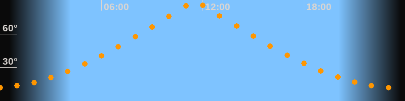 | Höchster Stand (Kulmination) | 11:31 Uhr (h = 89,3°) |