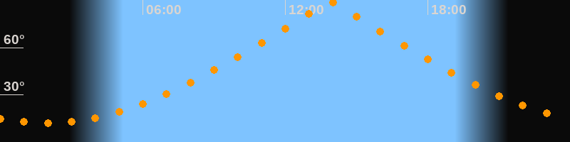 | Höchster Stand (Kulmination) | 13:54 Uhr (h = 89,3°) |