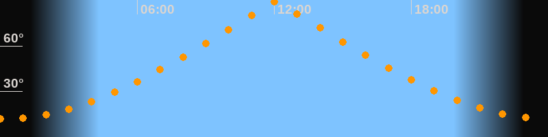| Höchster Stand (Kulmination) | 12:04 Uhr (h = 89,3°) |