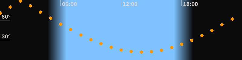 | Höchster Stand (Kulmination) | 02:06 Uhr (h = 89,3°) |