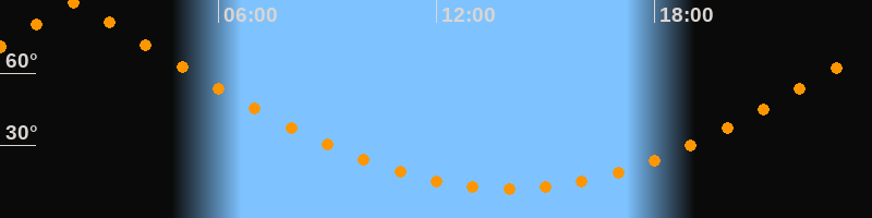 | Höchster Stand (Kulmination) | 02:03 Uhr (h = 89,3°) |