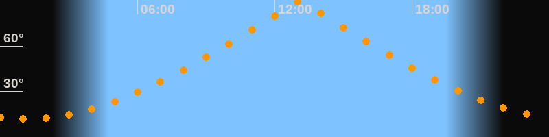 | Höchster Stand (Kulmination) | 13:04 Uhr (h = 89,3°) |