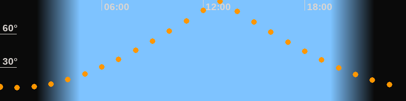 | Höchster Stand (Kulmination) | 12:57 Uhr (h = 89,3°) |