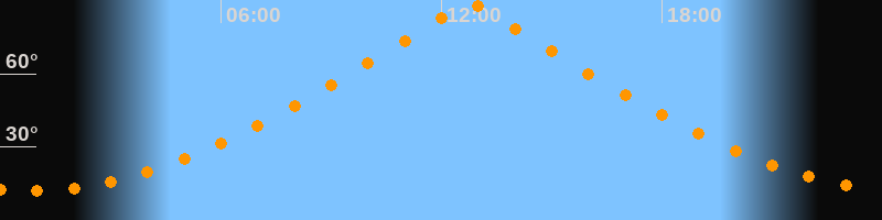 | Höchster Stand (Kulmination) | 12:46 Uhr (h = 89,3°) |