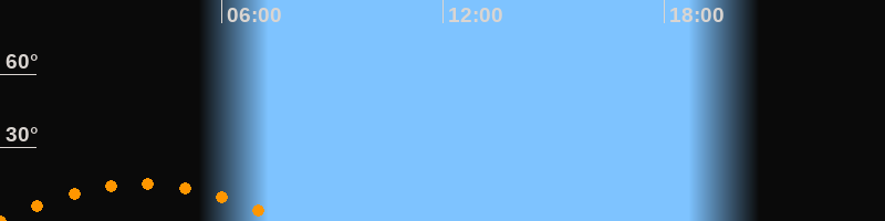 Aufgang23:56 Uhr im Südosten (αAz = 129,3°)