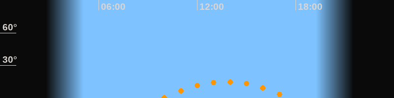 Aufgang09:53 Uhr im Südosten (αAz = 129,3°)