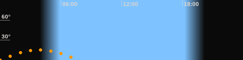 Aufgang23:56 Uhr im Südosten (αAz = 129,3°)