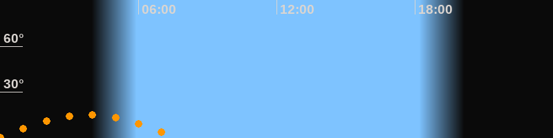 Aufgang23:52 Uhr im Südosten (αAz = 129,3°)
