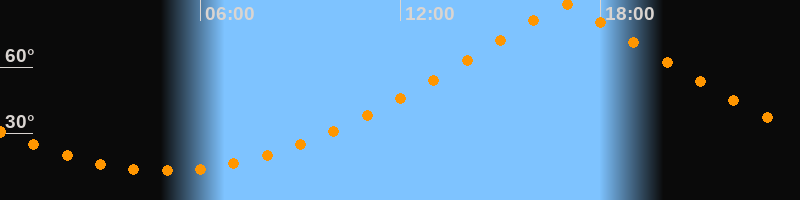 | Höchster Stand (Kulmination) | 16:57 Uhr (h = 88,1°) |