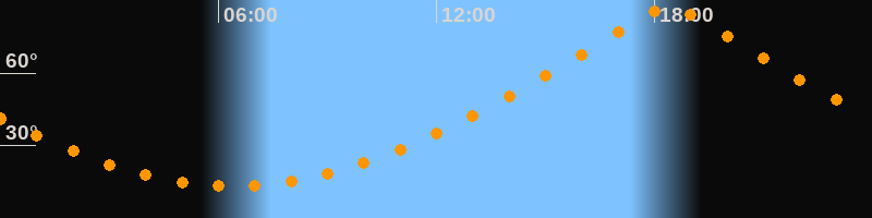 | Höchster Stand (Kulmination) | 18:24 Uhr (h = 88,1°) |