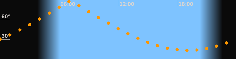 | Höchster Stand (Kulmination) | 07:07 Uhr (h = 88,1°) |