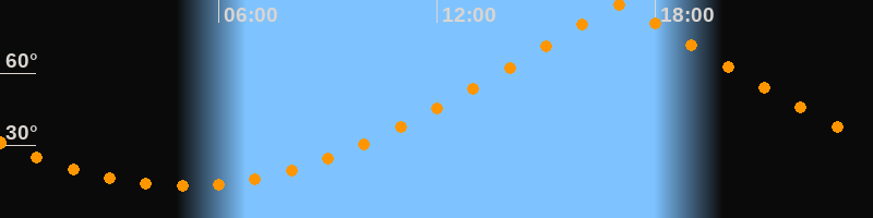 | Höchster Stand (Kulmination) | 17:01 Uhr (h = 88,1°) |