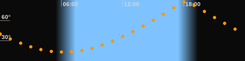 | Höchster Stand (Kulmination) | 18:12 Uhr (h = 88,1°) |
