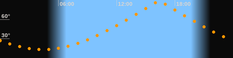 | Höchster Stand (Kulmination) | 16:22 Uhr (h = 88,1°) |