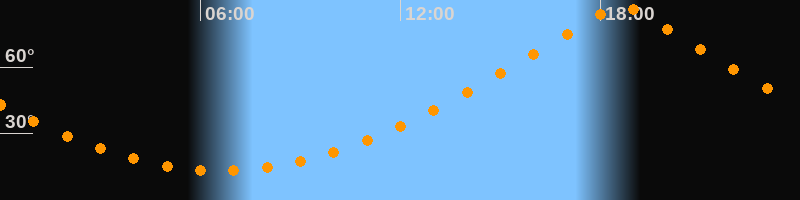| Höchster Stand (Kulmination) | 18:37 Uhr (h = 88,1°) |
