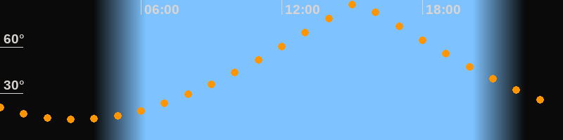 | Höchster Stand (Kulmination) | 15:13 Uhr (h = 88,1°) |