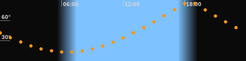 | Höchster Stand (Kulmination) | 18:29 Uhr (h = 88,1°) |