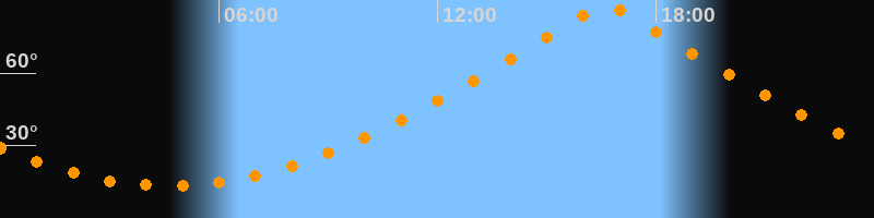 Höchster Stand (Kulmination)16:38 Uhr (h = 88,1°)