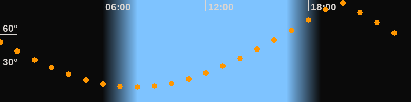 Höchster Stand (Kulmination)19:51 Uhr (h = 88,1°)