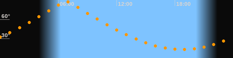 | Höchster Stand (Kulmination) | 06:47 Uhr (h = 88,1°) |