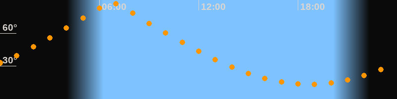 | Höchster Stand (Kulmination) | 06:44 Uhr (h = 88,1°) |