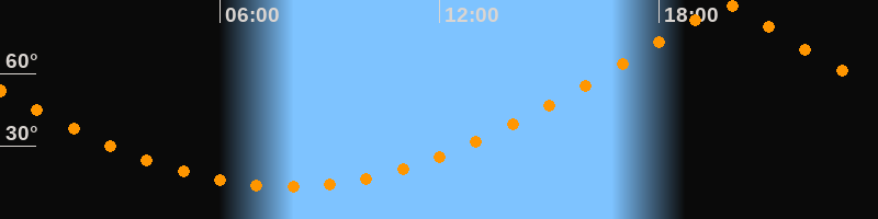 | Höchster Stand (Kulmination) | 19:50 Uhr (h = 88,1°) |