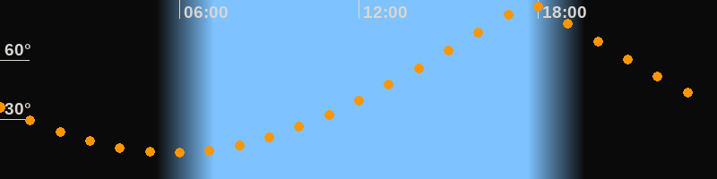 | Höchster Stand (Kulmination) | 17:44 Uhr (h = 88,1°) |