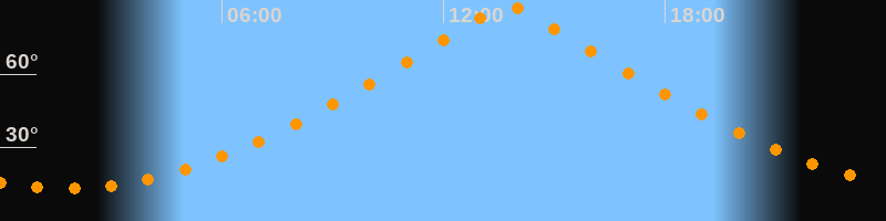 | Höchster Stand (Kulmination) | 13:44 Uhr (h = 88,1°) |