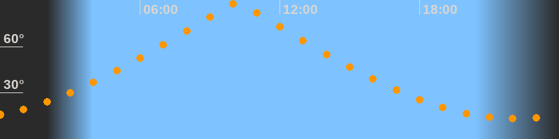 | Höchster Stand (Kulmination) | 10:08 Uhr (h = 88,1°) |