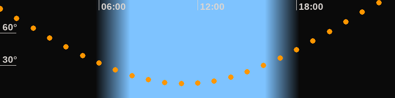 | Höchster Stand (Kulmination) | 23:08 Uhr (h = 88,1°) |