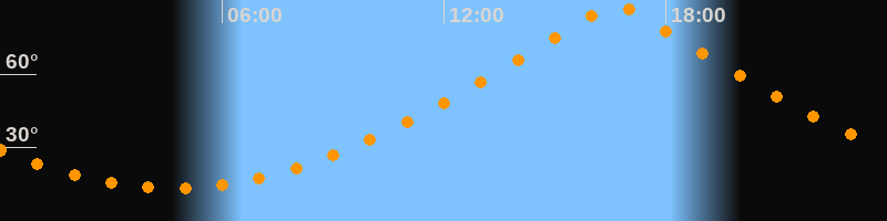 | Höchster Stand (Kulmination) | 16:38 Uhr (h = 88,1°) |